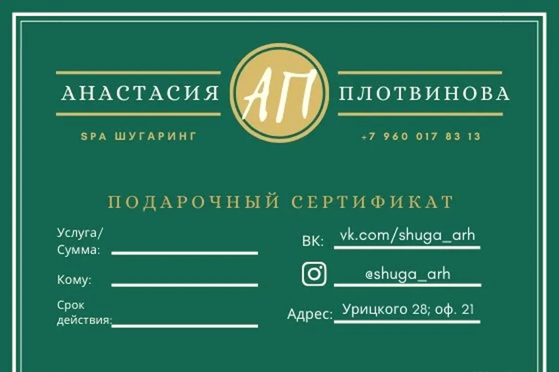 Как записать в Авторская студия SPA-шугаринга Анастасии Плотвиновой?