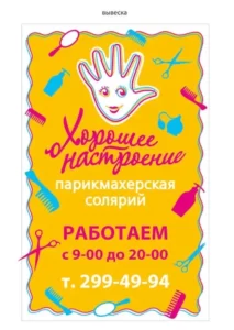 Салон Хорошее настроение – это место для тех, кто хочет выглядеть безупречно и чувствовать себя уверенно. Мы предлагаем широкий выбор услуг по уходу за лицом, волосами и телом, который подберет мастера с учетом ваших пожеланий и особенностей. Наши специалисты создадут для вас идеальный образ, подчеркивающий вашу индивидуальность и стиль. Наш адрес: Российская Федерация, Новосибирск, улица Станиславского, 44/1 Предварительная запись по телефону: 79139174924.